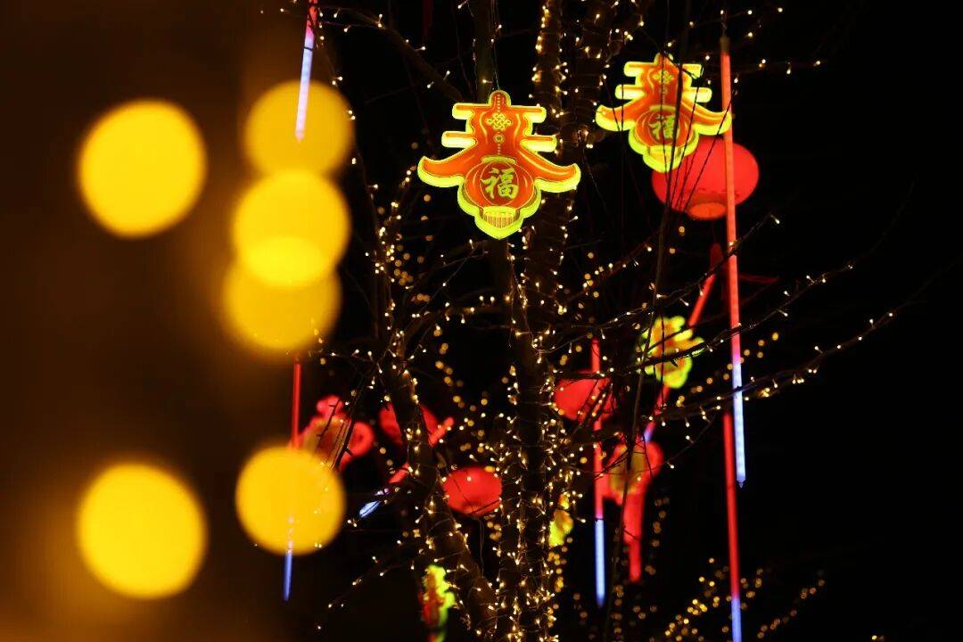 市城管局秉持“不仅追求亮化,更追求美化、艺术化”的理念,在亮化设计与施工中精益求精。依据树木自然形态个性化布置LED灯串,搭配中国结、红灯笼、福袋等节日装饰,做到疏密有致、高低错落,实现自然景观与人文艺术的和谐共生;在灯具选型上严格把控安全与环保标准,通过点、线、面结合的科学布光方式,凸显建筑的立体感与层次感,全方位提升市民的视觉体验与观赏感受。