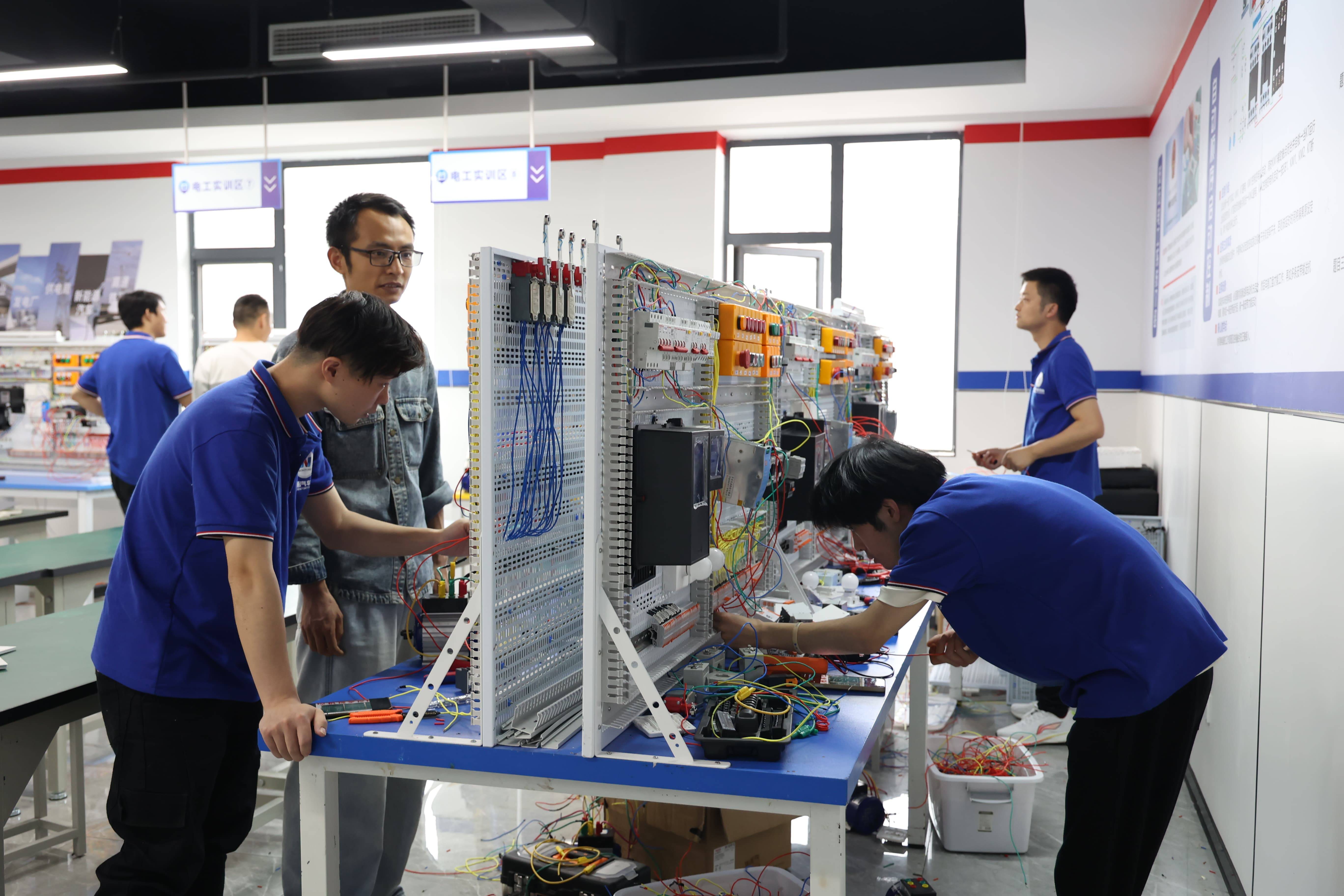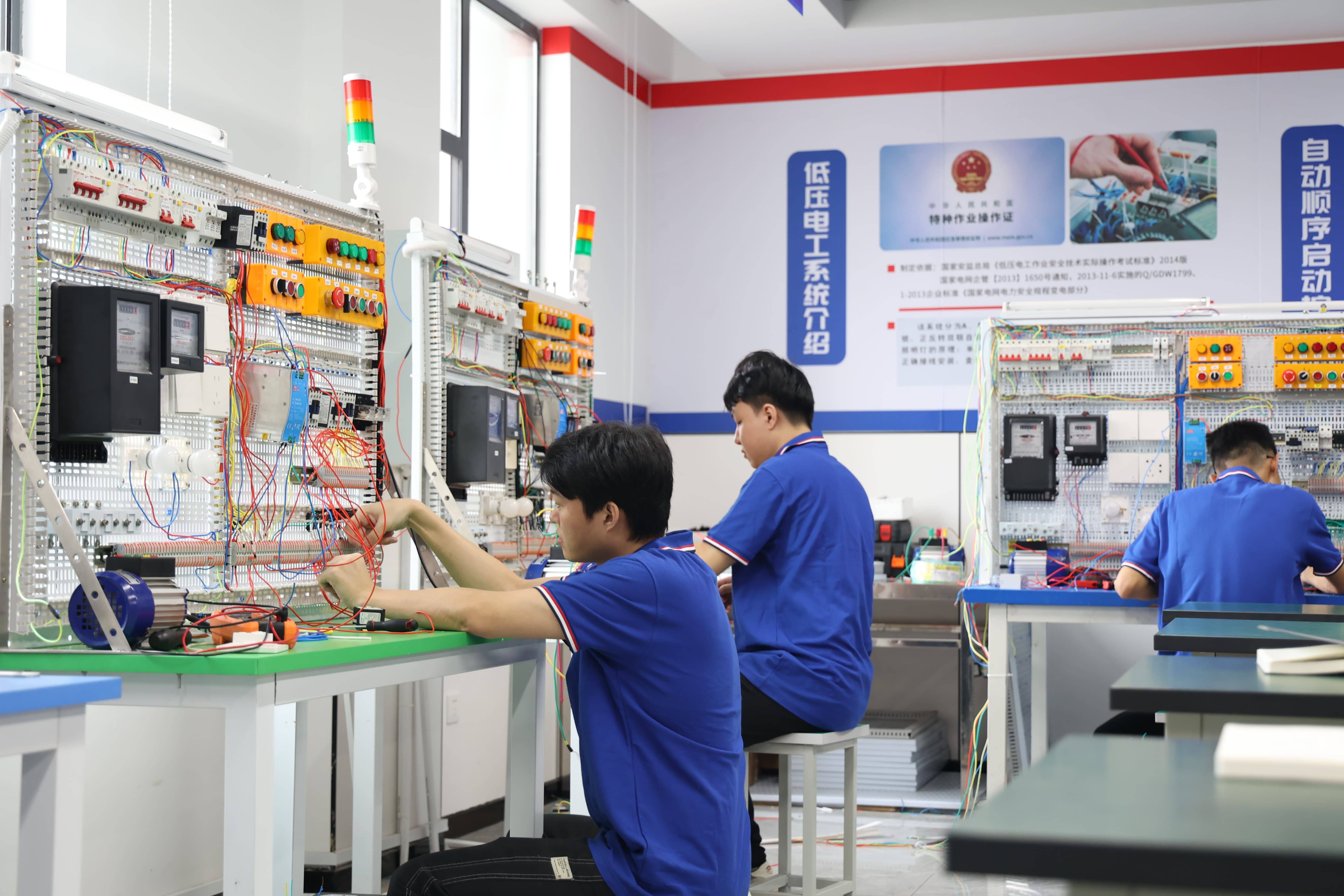再来看课程体系。该专业的课程紧扣岗位核心能力,以真实工业项目为导向,采用理实一体化教学模式。核心课程包括PLC编程与调试、HMI人机界面设计、变频器应用技术、工业机器人离线编程等,通过项目拆解—技能讲授—实战操作的教学逻辑,让学员在完成自动化生产线控制、设备故障排查等实战任务中掌握技能。此外,学校还推行技能 + 学历培养模式,学员可同步考取电工职业资格证书与大专学历,大大提升了就业竞争力。